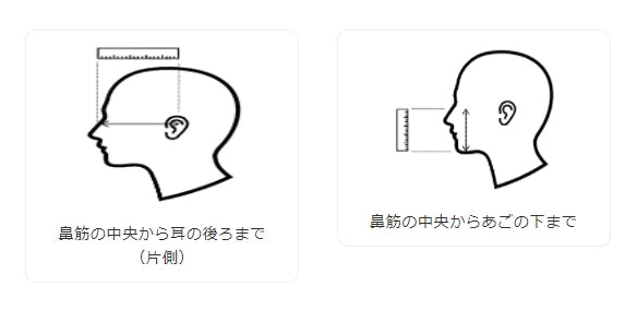 - 鼻筋の中央からあごの下まで(最大)12.5 - 12.5 cm