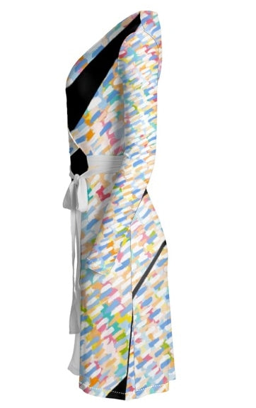 サイズをSからLまでご用意しているこちらのラップワンピはひざ上丈のエレガントなSPRING LIGHT deltaカラー(上昇氣龍/kara-fitロゴ付き)のドレススタイルです。体にフィットするデザインとなっているので、ボディコンシャスなスタイルがお好きな方におすすめです。スリムフィットなデザインが自然なくびれを強調。縁取りとベルト帯の色はホワイト。