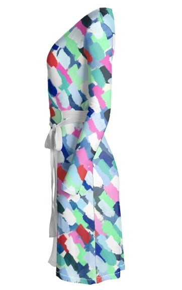 サイズをSからLまでご用意しているこちらのラップワンピはひざ上丈のエレガントなRAIN LIGHTカラーのドレススタイルです。体にフィットするデザインとなっているので、ボディコンシャスなスタイルがお好きな方におすすめです。スリムフィットなデザインが自然なくびれを強調。縁取りとベルト帯の色はホワイト。