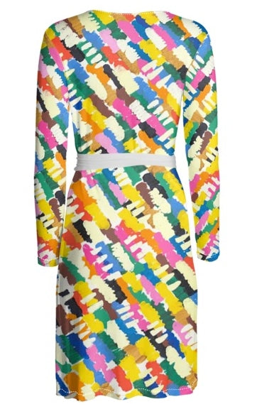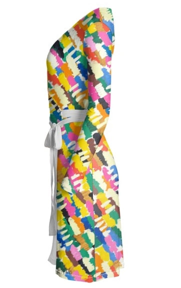 サイズをSからLまでご用意しているこちらのラップワンピはひざ上丈のエレガントなSUMMER LIGHTカラーのドレススタイルです。体にフィットするデザインとなっているので、ボディコンシャスなスタイルがお好きな方におすすめです。スリムフィットなデザインが自然なくびれを強調。縁取りとベルト帯の色はホワイト。