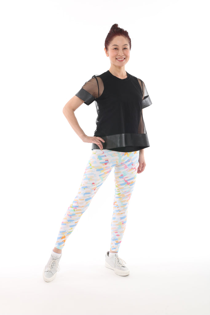 生地はフィット感と伸縮性に優れた「ライクラ」を使用。伸び縮みが非常に良く、レギンスにとても適しています。